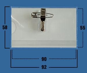 Выполнен из плотного прозрачного пластика, на задней стороне металлический зажим и дополнительное крепление, булавка.