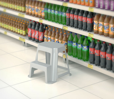 Литой табурет-стремянка. Позволяет легко добраться до полок, расположенных выше человеческого роста. Не требует сборки. Штабелируется.