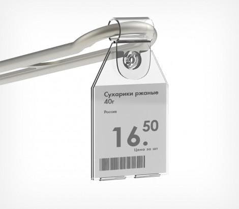 Откидной держатель ценника для двойных металлических или пластиковых крючков, Защелкивается на передний край крючка. Идеально подходит для двойных крючков без T-держателя. Размер бумажной вставки 27 х 30 мм