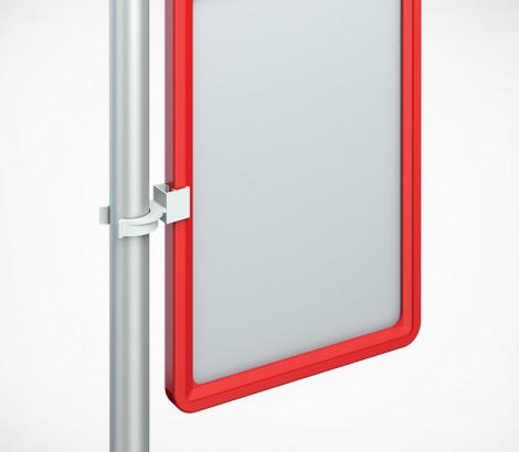 Клипса для крепления пластиковых рамок на трубах Ø 22-25 мм. Подходит для крепления пластиковых рамок на трубу JOKER. Рекомендуется использовать с рамками А6, А5, А4, А3, А2. Для крепления одной рамки необходимо две клипсы. Изготовлена из ударопрочного пластика.