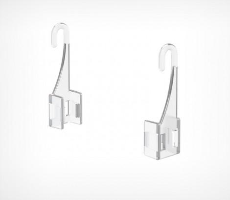 Фиксированный крючок для крепления пластиковых рамок в перфорированных вставках в подвесные профили. Для подвешивания одной рамки необходимо два крючка разной ориентации (правый и левый). Закрепляются на боковых поверностях рамки.