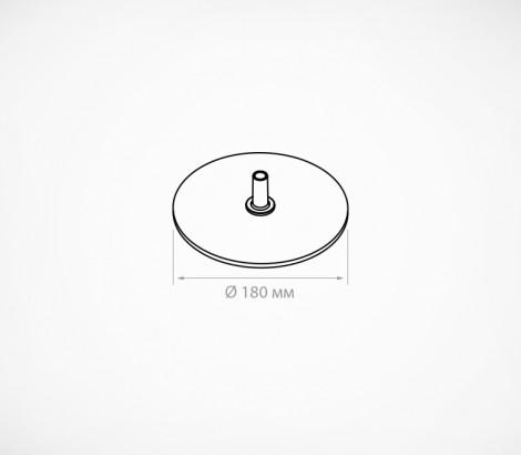 Круглая металлическая подставка, с прастиковой втулкой, для рекламных стоек.  Диаметр подставки - 180 мм. Толщина металла - 2 мм.  Держатель для трубок Ø 12.