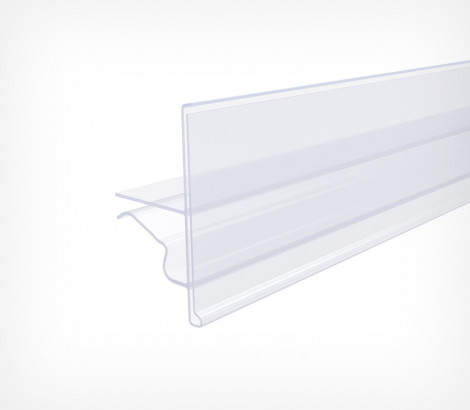 Ценникодержатель для полок с торцом из двух прутов. Чаще всего применяется в вертикальном холодильном оборудовании. Имеет смещенный в нижнюю часть профиля фиксатор для сокращения занимаемого пространства выкладки уровнем ниже и более легкого вынимания товара. Верхняя часть профиля выступает ограничителем для товара.
