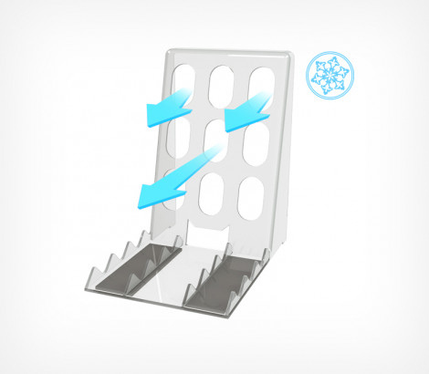 Пластиковая опора на магнитном основании для выкладки товаров в плоских и неустойчивых упаковках позволяет презентовать продукт «лицом» к покупателю. Уникальность данной модели в крупных отверстиях, которые при использовании её в холодильном оборудовании обеспечивают равномерное охлаждение товаров со всех сторон. Магнитное основание опоры идеально фиксирует её на металлических полках, удерживая не только легкие товары.