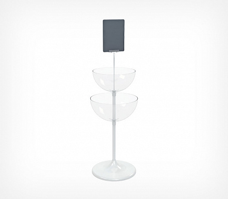 UNIBOWL-TOWER — двухуровневый дисплей, состоящий из двух чаш разных объёмов. Позволяет делать выкладку сразу двух товаров и ещё более эффективно использовать торговую площадь, увеличивая продажи.