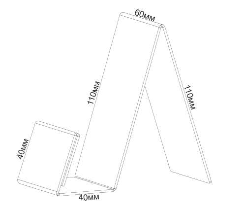 Универсальная подставка для телефона или другого подобного товара. С ценникодержателем 60х40 мм. Имеет вырез на задней стороне, для удобства смены ценника. Отлично держит различные размеры и вес товаров, передний упор надежно удерживает продукцию.