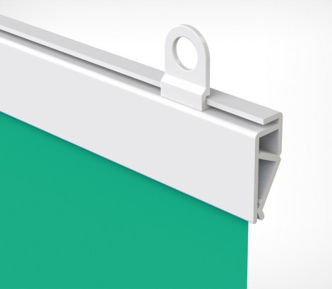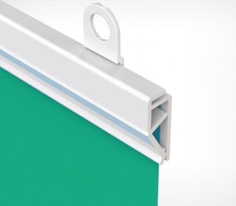 Пластиковый клик-профиль для подвешивания бумажных плакатов, тонких баннеров, плакатов на ткани. Используется с крючками CLICKER (2 крючка на 1 метр профиля). Внешние размеры ( в-т) - 20 x 6 мм., максимальная толщина вставки - 0,7мм