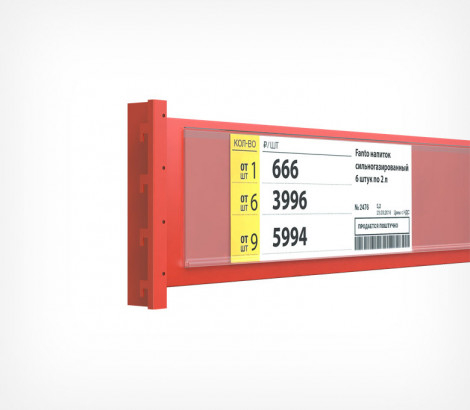 DBR 73 — полочный самоклеящийся ценникодержатель для ценников высотой 73 мм. Предназначен для размещения ценников с крупным шрифтом и детальной информацией о товаре.