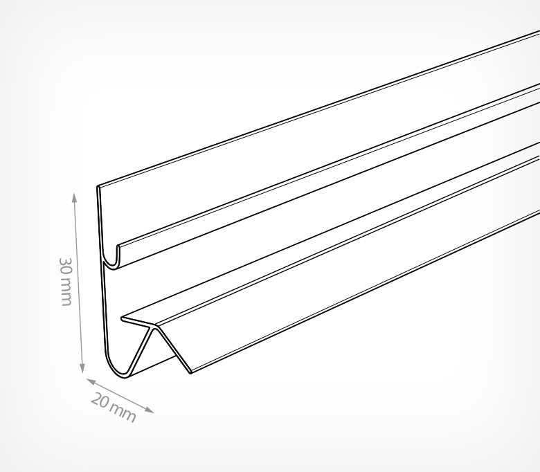 Профиль ANGLE-SUPPORT-U применяется для оптимального размещения откидных ценникодержателей, обеспечивая удобное чтение ценников на нижних полках торгового оборудования.